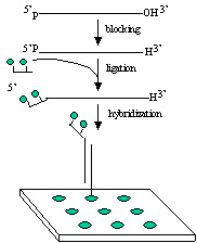 GenoExplorer™ microRNA labeling kit (patented) principle and workflow. Labeled RNA hybridizes with probes on a glass microarray slide.